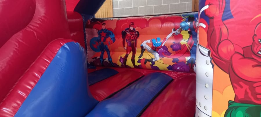 Ultimate Fun with Our Superhero Front Slide Bouncy Castle!